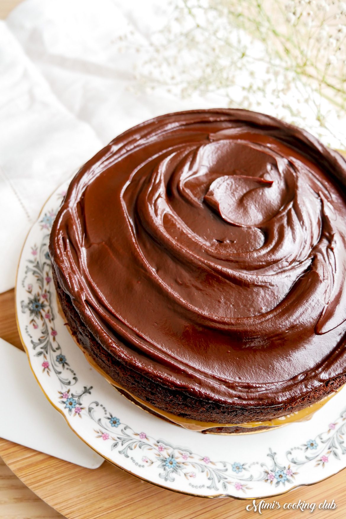 La recette de base s’appelle Very best chocolate fudge cake et est tiré du livre Mary Berry’s Baking Bible. Comme son nom l’indique, c’est une véritable bible des recettes sucrées classiques. Je vous ai déjà parlé de Mary Berry, c’est la Mercotte du Royaume-Uni ! À 83 ans, elle présente toujours des émissions culinaires sur la BBC, c’est une institution. J’ai un énorme respect pour elle, et les britanniques l’adorent !