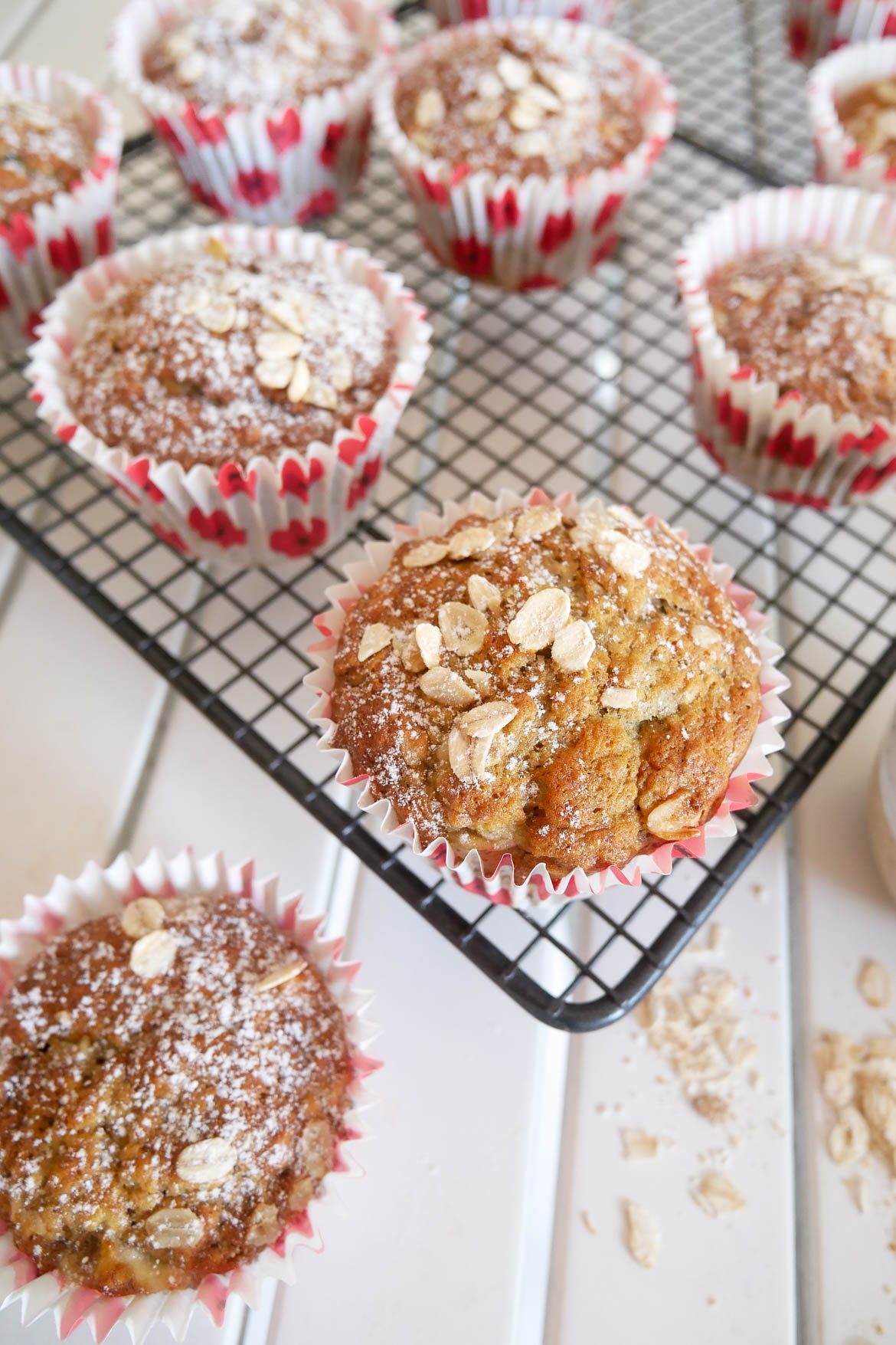 Les muffins se garderont sans problème cinq jours dans une boîte hermétique à température ambiante. Vous pouvez également les congeler pour toujours en avoir sous la main. Ah oui, on me souffle à l’oreille qu’avec une poignée de pépites de chocolat c’est irrésistible ! La recette est adaptée du blog Fashion Cooking d’Anne-Sophie, l’une des gagnantes du Meilleur Pâtissier.